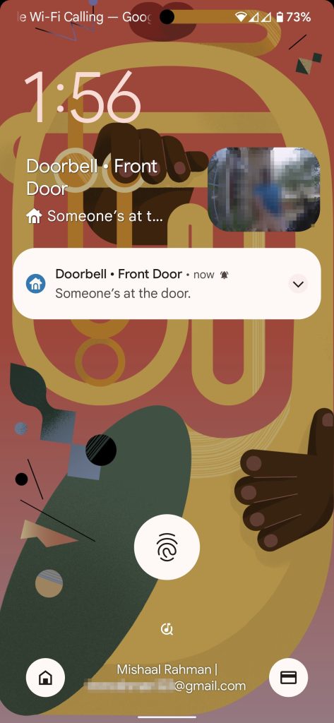 Пожалуй, наиболее заметным дополнением является возможность просмотра прямого видео с камер любых совместимых аксессуаров для умного дома без необходимости открывать приложение Google Home. Как видно из скриншотов выше, небольшое уведомление появится в виджете «На виду», а на экране блокировки вы получите небольшое изображение живого предварительного просмотра, позволяющее увидеть, кто находится у вашей входной двери, когда кто-то активировал ваш дверной звонок.