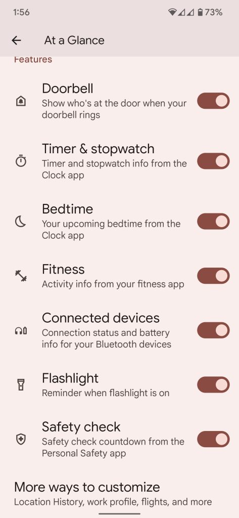 Популярный виджет Pixel Launcher «На виду» был переработан с обновлением Android 12, но теперь он получает еще больше новых функций, включая предварительный просмотр с дверных камер, а потенциальный редизайн настроек намекает на добавление напоминаний об активации фонарика и многое другое.