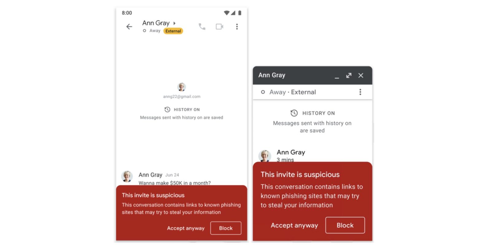 Эти предупреждающие баннеры в Google Chat начнут появляться с сегодняшнего дня, а их полноценный запуск состоится в ближайшие недели: