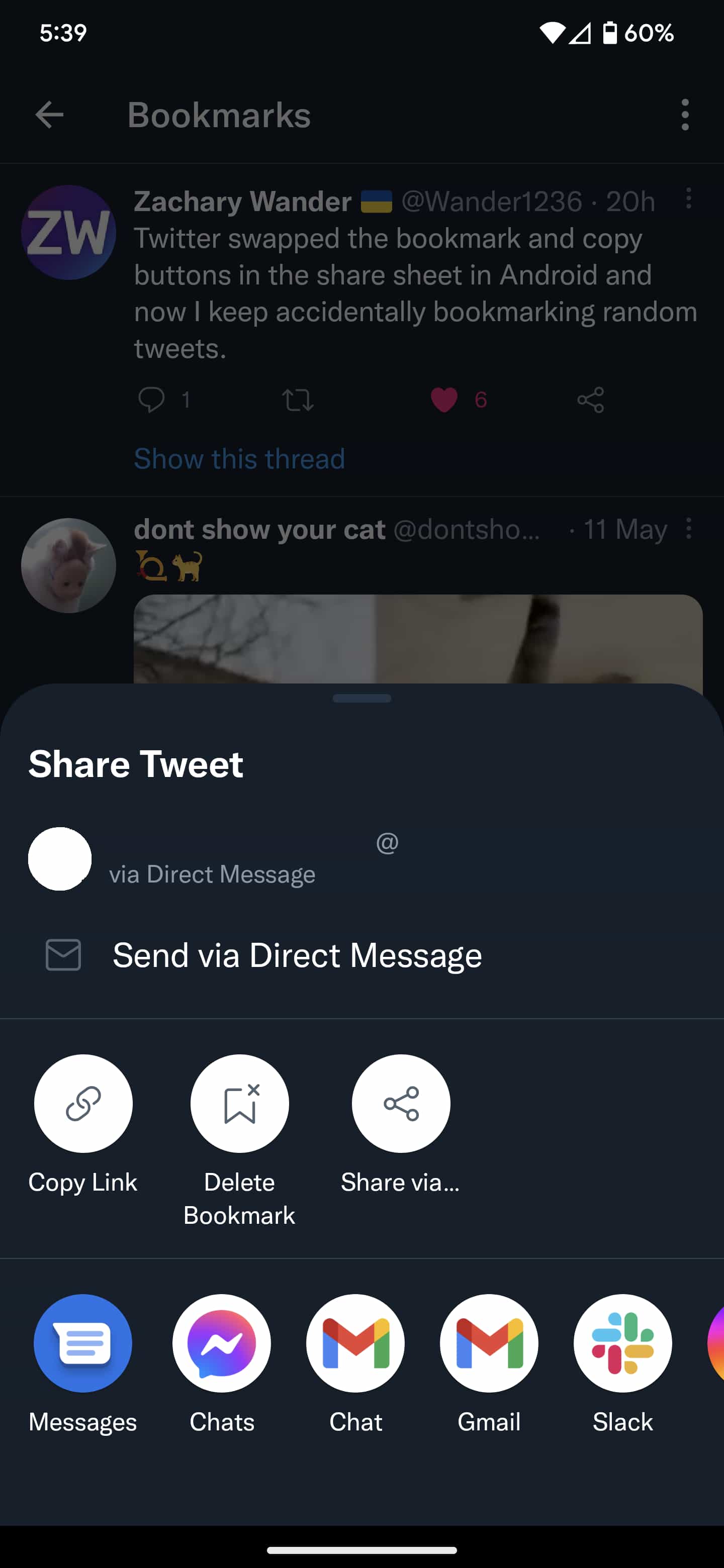 Это операция в два касания, которая включает нажатие кнопки «Поделиться», открывающей специальное меню приложения, а затем нажатие на «Копировать ссылку» в среднем ряду опций. В последнем обновлении мобильного приложения Twitter кнопка «Копировать ссылку» переместилась со второго места в этом ряду на первое, поменявшись местами с «Закладкой». Для тех из нас, у кого выработалась мышечная память, это привело к ошибочному добавлению в закладки довольно большого количества твитов.
