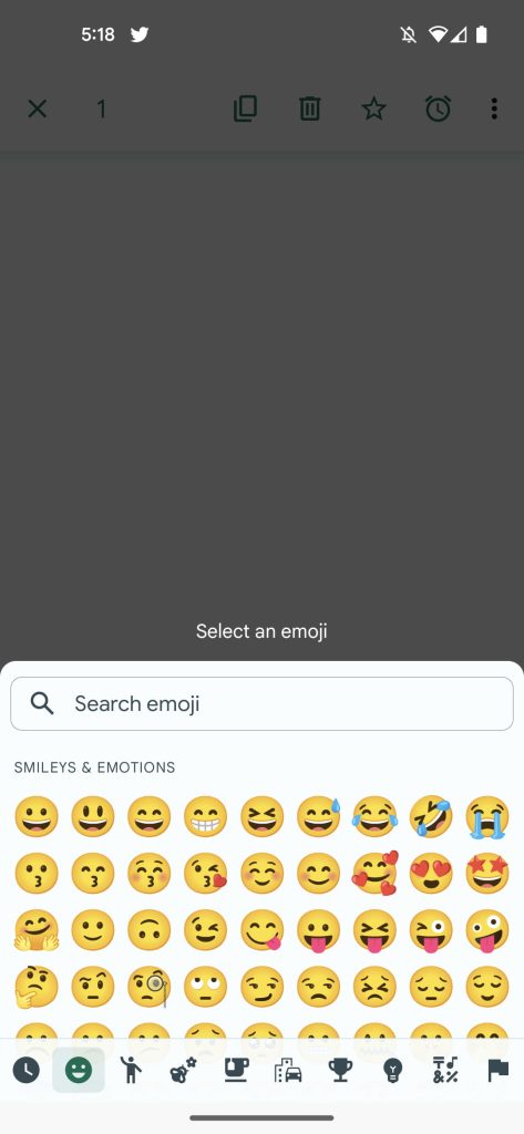 Нажатие этой кнопки открывает полный список эмодзи, доступных на вашем телефоне Android, любой из которых можно использовать в качестве реакции на сообщение. Более того, эти пользовательские реакции с эмодзи уже работают на стороне получателя без необходимости включения функции, поскольку наша команда смогла отправлять друг другу различные реакции с эмодзи.