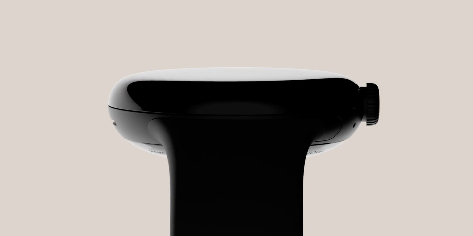 Первый новый и примечательный кадр Pixel Watch подчеркивает толщину устройства. Мы отчетливо видим его три слоя: экран, корпус с выступающей заводной головкой и нижнюю часть с датчиками.