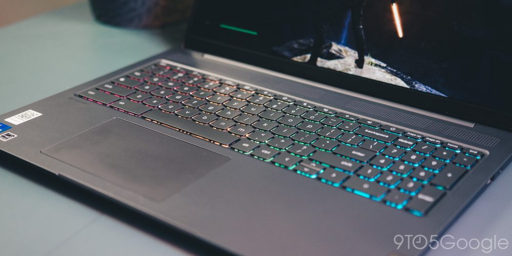 Печатать в целом приятно, и использовать клавиши для большинства игр так же. При этом 16-дюймовый Chromebook Lenovo имеет RGB-подсветку под клавишами. В Chrome OS вы можете менять цвет клавиш на несколько разных цветов, в том числе генерировать его автоматически на основе вашего фонового изображения.