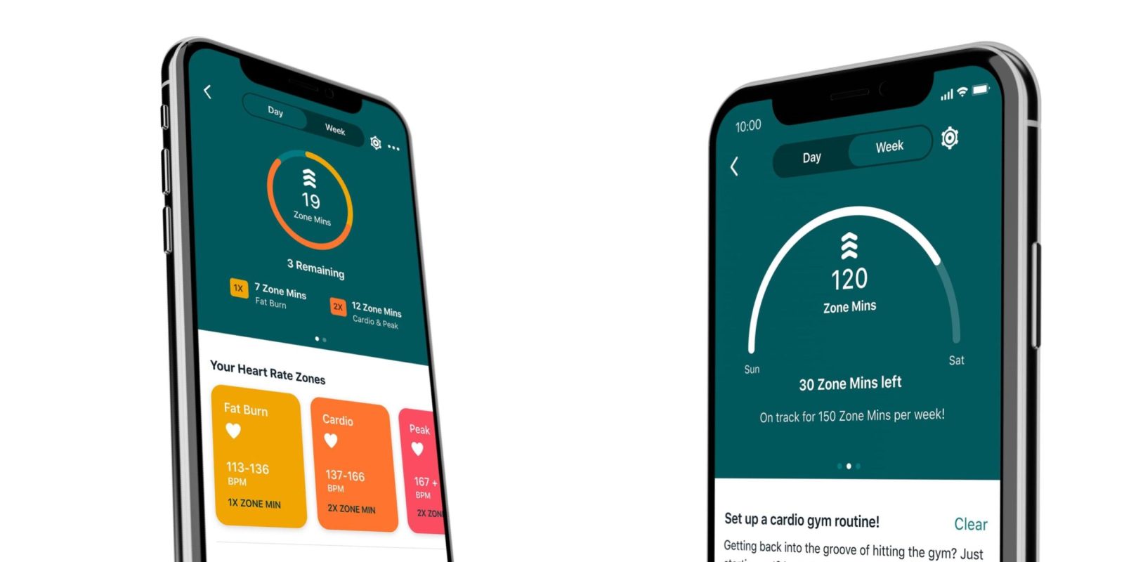 «Минуты в активных зонах» — это измерение того, сколько времени вы тратите на «активность, заставляющую сердце биться чаще». Вы получаете один AZM, когда занимаетесь спортом в зоне сжигания жира, и два — в кардио- или пиковой зонах, что персонализируется в зависимости от вашего возраста и частоты сердечных сокращений в покое. «Цель по умолчанию основана на широко признанных рекомендациях Американской кардиологической ассоциации, Центров по контролю и профилактике заболеваний и Всемирной организации здравоохранения о 150 минутах умеренной активности или 75 минутах интенсивной активности в неделю».
