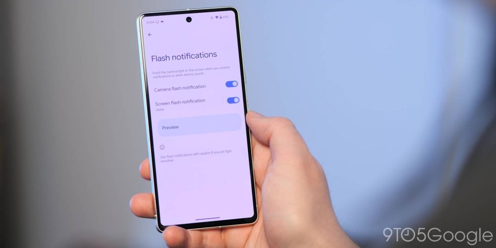 Android 14 Developer Preview 2 включает функцию «Уведомления с помощью вспышки», которая позволит владельцам Pixel эмулировать давно потерянный светодиод уведомлений в предстоящей сборке. Google добавил опцию «Уведомления с помощью вспышки» в панель «Специальные возможности», которая позволяет использовать вспышку камеры для мигания при получении уведомления.