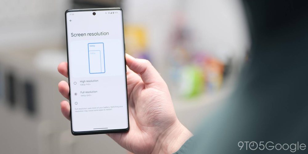 Экран QHD+ на Pixel 6 Pro по умолчанию работает с этим разрешением. Когда вышел Pixel 7 Pro, он получил возможность переключать разрешение между FHD+ и QHD+. Говорят, что это помогает продлить срок службы батареи, не снижая при этом качество изображения и экрана слишком сильно. Обновление функций за март позволяет настроить разрешение на Pixel 6 Pro на более низкое, если вы хотите попробовать это самостоятельно.