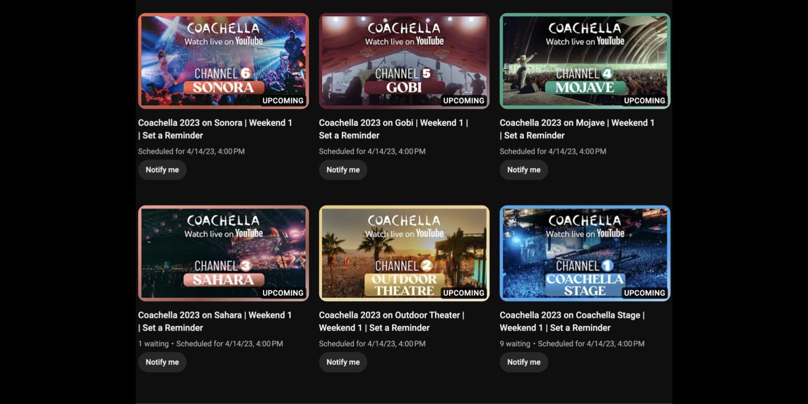 В прошлом году YouTube транслировал только три сцены, но в этом году будет шесть прямых трансляций для обоих уикендов Coachella 2023: 14-16 апреля и 21-23 апреля.