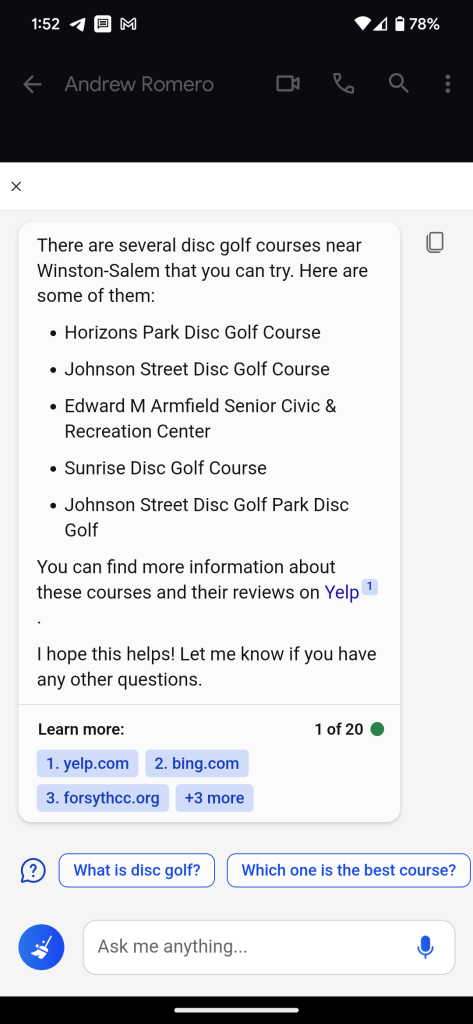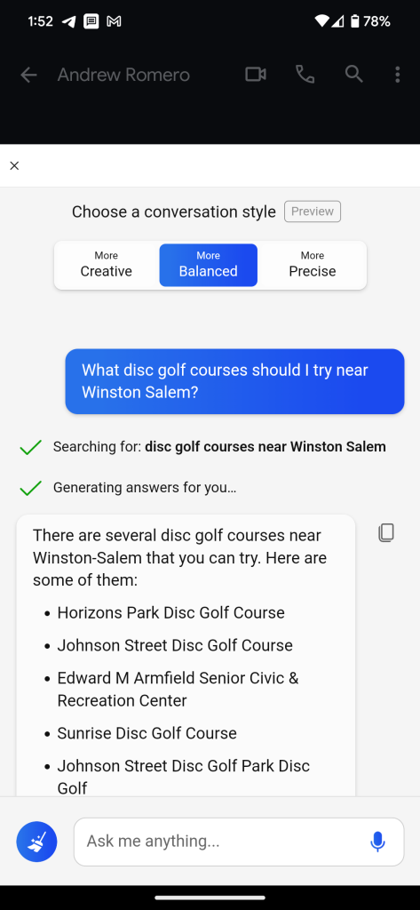 Единственное, что можно сделать с ответами Bing, — это скопировать их в буфер обмена с помощью кнопки «копировать». Это хорошо работает, но лично я немного сомневаюсь в практической пользе — ответы Bing, как правило, немного многословны. Тем не менее, есть места, где это определенно было бы полезно.