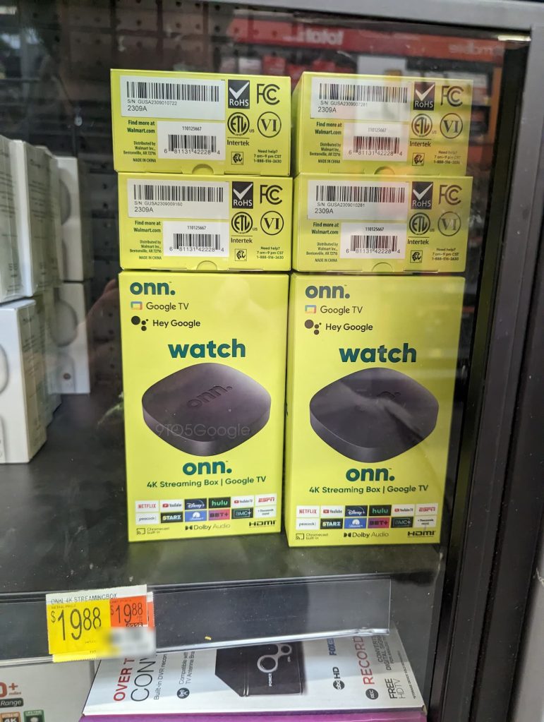 С тех пор мы смогли подтвердить, что по крайней мере некоторые магазины Walmart уже завозят Google TV-стики Onn, с устройствами на полках, как показано ниже. Это также подтверждает цену в 19,88 долларов США, указанную на сайте Walmart.