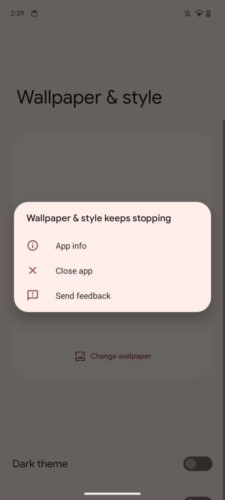 Мой коллега Дилан Руссель исследовал эту проблему и обнаружил, что сбой связан с переключателем «Тематические значки» — который переключает поддерживаемые приложения Android на использование перекрашенных значков — в «Обои и стили». Если у вас включены тематические значки, апплет будет постоянно аварийно завершать работу. Так что, если вы еще не включили эту функцию, убедитесь, что она остается в таком состоянии.