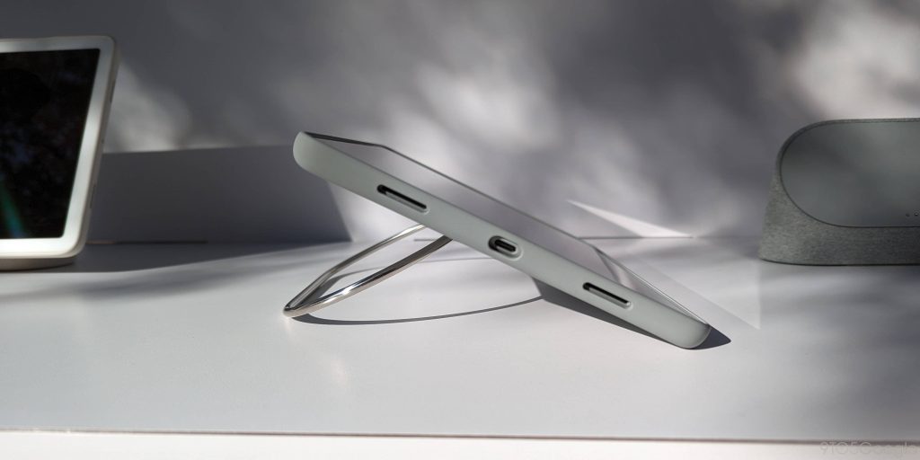 Конечно, главной особенностью является металлическое кольцо в форме таблетки, которое позволяет устанавливать Pixel Tablet под «практически любым углом», по словам Google, благодаря нескользящему материалу в нижней части. Таким образом, Pixel Tablet можно расположить вертикально, почти горизонтально и под любым промежуточным углом. Для сравнения, чехол Apple iPad и обложка Samsung предлагают только два угла наклона.