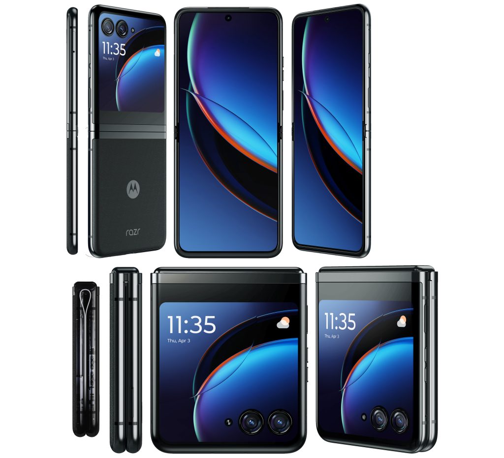 Помимо видео, Бласс также поделился серией изображений нового Razr, которые показывают его со всех сторон и также явно подтверждают ожидаемое использование шарнира типа «капля».