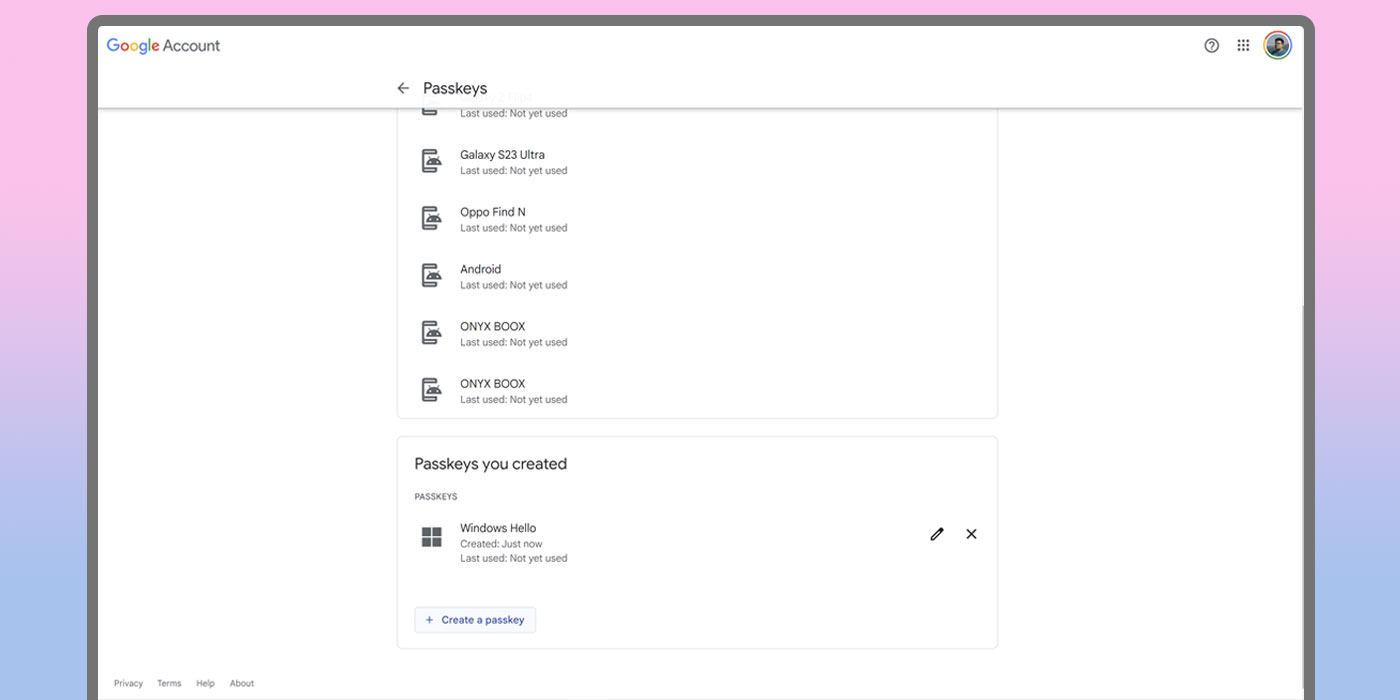 После завершения вы сможете входить в свою учетную запись Google с помощью созданного passkey вместо обычного пароля. Поскольку Google продолжает расширять эту функцию, а другие компании следуют ее примеру, использование passkeys, вероятно, станет нормой для большинства приложений.