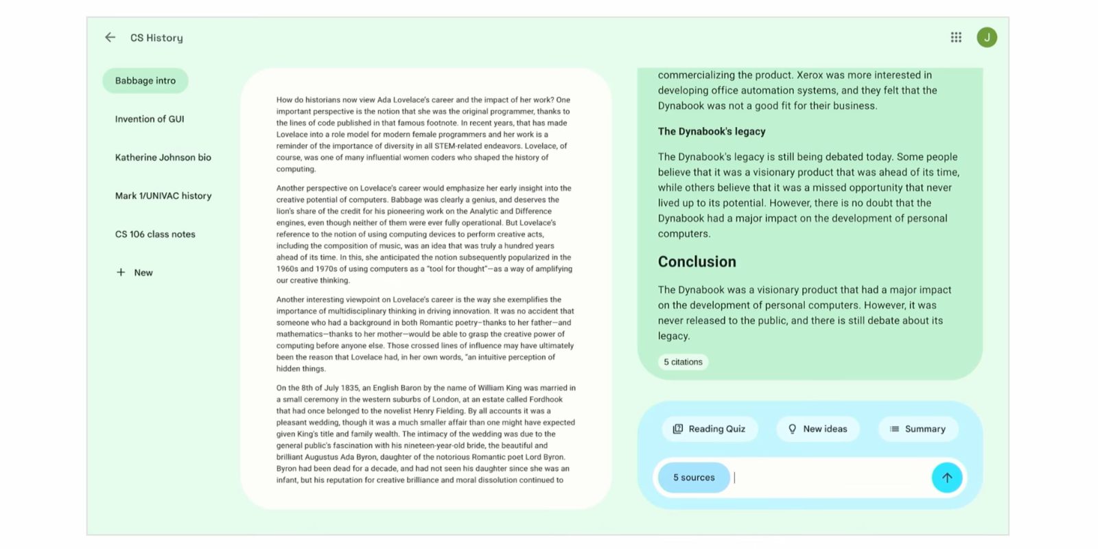 В этом случае Tailwind может создать руководство для подготовки к экзаменам, резюме или даже тест для проверки знаний, с пользовательским интерфейсом на основе запросов, позволяющим вам делать больше с данными. Цель — помочь вам учиться быстрее, и Google предполагает, что это также будет полезно для «писателей, исследующих статью, аналитиков, изучающих отчеты о прибылях, или даже юристов, готовящихся к делу».