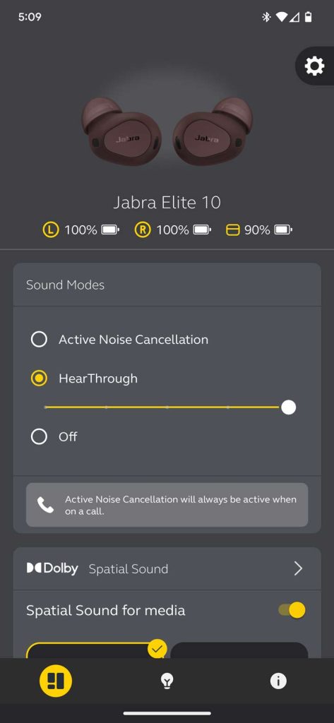 Есть пара ключевых моментов производительности, которые делают вкладыши Elite 10 от Jabra одними из лучших вкладышей, которыми я пользовался за последнее время. Во-первых, управляющее приложение на Android и iOS представляет собой простой центр для настроек, аудиопредпочтений и утилит, и оно справляется с этим максимально просто.