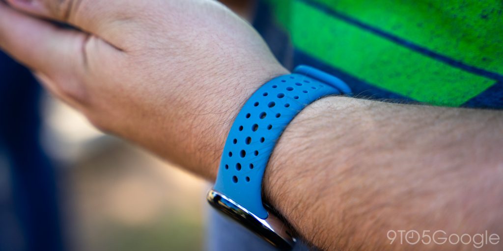 Как упоминалось ранее, в этом году Google представляет новый стиль ремешка первого производителя — «Active Sport». Он переходит от фторэластомера к силикону, и спортивный ремешок Active — это, безусловно, самый удобный силиконовый ремешок, который я когда-либо носил. Google не опубликовал характеристики веса, но он примерно вдвое легче стандартного ремешка Active, что делает его идеальным выбором для, ну, активного образа жизни и занятий спортом. Я носил его почти постоянно в течение последних нескольких дней, и он был супер удобным, а цвет «Moondust» — отличный компромисс между синим и серым.