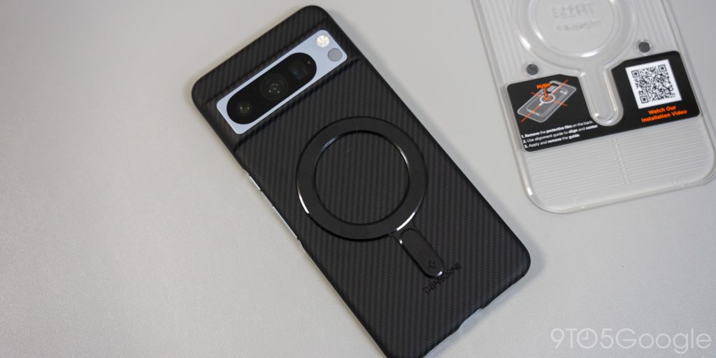 Установить кольцо Spigen MagFit очень просто. Оно поставляется с установочной пластиной, которую вы просто помещаете на заднюю панель чехла. Найдите центр с помощью индикаторов на инструменте, снимите защитную пленку и приклейте. После надавливания эта наклейка никогда не отклеится, если вы этого не захотите. За 16 долларов кольцо MagFit — это простое дополнение, которое обеспечивает надежную совместимость с MagSafe для почти идеального чехла для Pixel 8.
