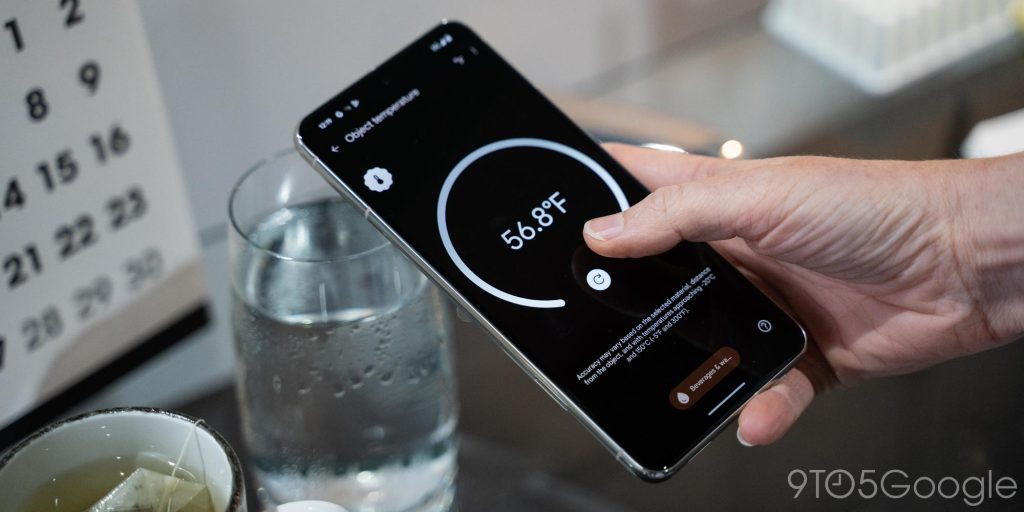 В странном выборе Google оснастила Pixel 8 Pro датчиком температуры на задней панели. Датчик может определять поверхностную температуру объекта в пределах нескольких дюймов, но это, по сути, все, что он делает. Google ожидает одобрения FDA для измерения температуры человеческого тела с помощью датчика, что могло бы быть немного полезным, но на данный момент существует только приложение, которое может определять поверхностную температуру объекта.
