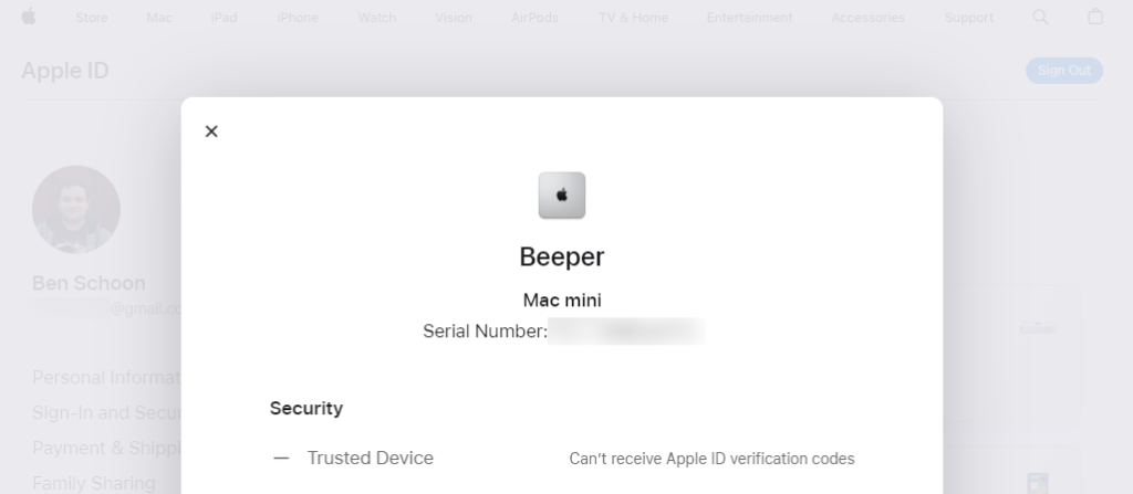 Верный слову Beeper, когда я вошел в свой Apple ID через приложение, 2FA моего iPhone обнаружила это как попытку входа из моего домашнего города, а не с какого-то случайного серверного центра. Тем не менее, если вы проверите устройства, вошедшие в вашу учетную запись, вы увидите свое устройство, добавленное как Mac, а не как iPhone или какое-либо другое устройство. Beeper говорит мне, что это просто часть того, как им удалось сделать обратную инженерию iMessage, и что приложение «представляется Apple как Mac».