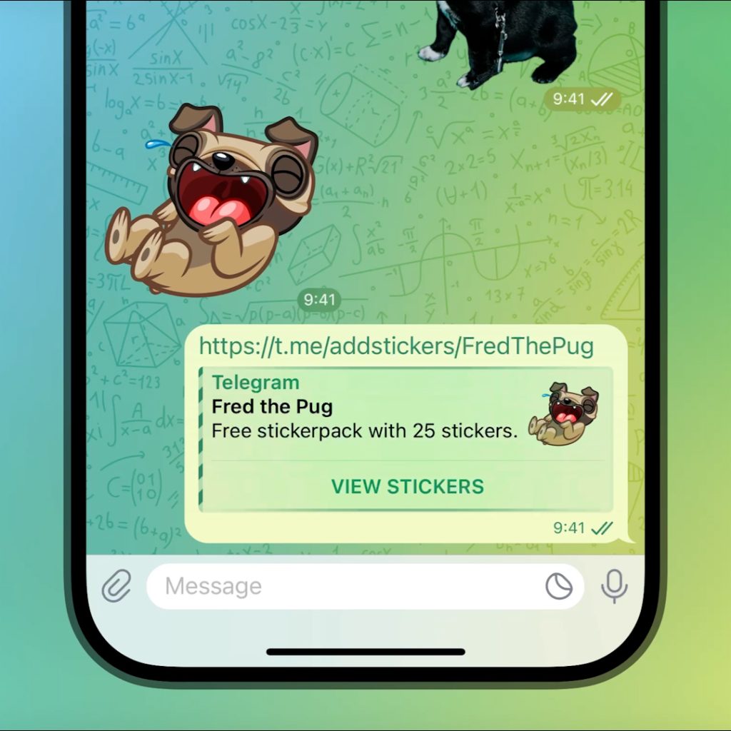 Вы можете отправить свое творение или создать набор стикеров. Telegram 10.11 позволяет делиться любыми вашими наборами стикеров с друзьями, но неясно, требуется ли им последняя версия 10.11 для использования этой функции. При отправке отображается предварительный просмотр ссылки, и набор получает свою уникальную ссылку t.me, которой можно делиться в других местах.
