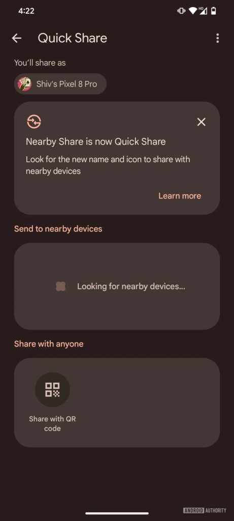 Чтобы исправить это, Google, похоже, добавляет QR-коды в Quick Share.
