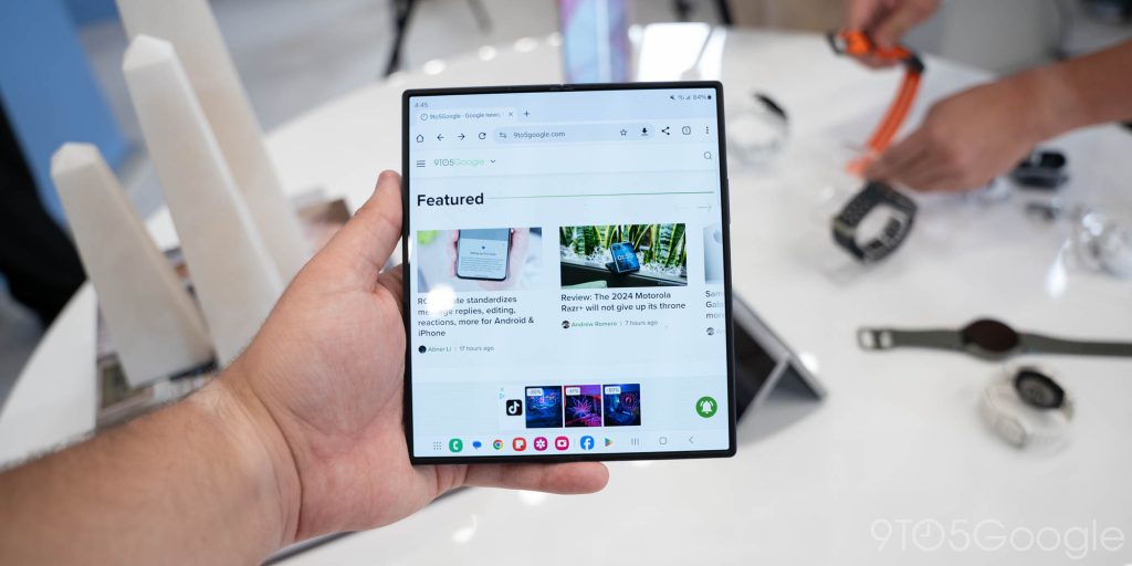 Прежде всего, Samsung обновила соотношение сторон дисплея. Чрезвычайно узкий размер внешнего дисплея давно подвергался критике, но теперь он стал шире. Внешний дисплей имеет соотношение сторон 22,1:9, что немного шире, чем 23,1:9 у Galaxy Z Fold 5. Для сравнения, у OnePlus Open соотношение сторон внешнего дисплея составляет 20:9, а у Galaxy S24 Ultra — 19,5:9.