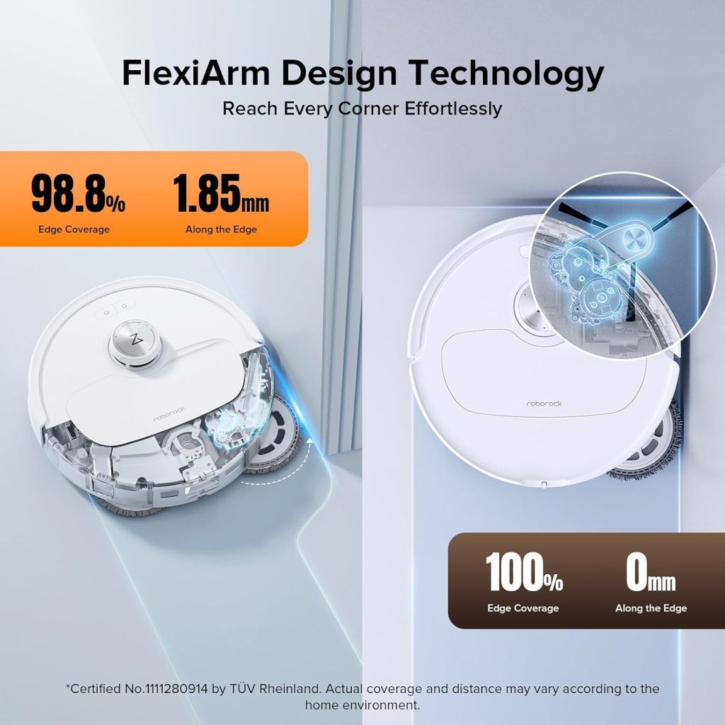 За эту цену вы получите робота, который может пылесосить с мощностью всасывания 10 000 Па, оснащен вращающимися щетками, которые оттирают пол по мере движения робота, и функцией Roborock «FlexiArm», которая подводит щетку ближе к углам для более глубокой и тщательной очистки. И все это с минимальным участием с вашей стороны благодаря продвинутому картографированию и системе обхода препятствий Roborock, а также док-станции, которая может хранить до семи недель грязи и пыли благодаря самоочищающемуся пылесборнику, а также способности опустошать и наполнять встроенный резервуар для воды. Он даже моет щетки горячей водой, а затем очищает саму док-станцию, обеспечивая по-настоящему легкую уборку!