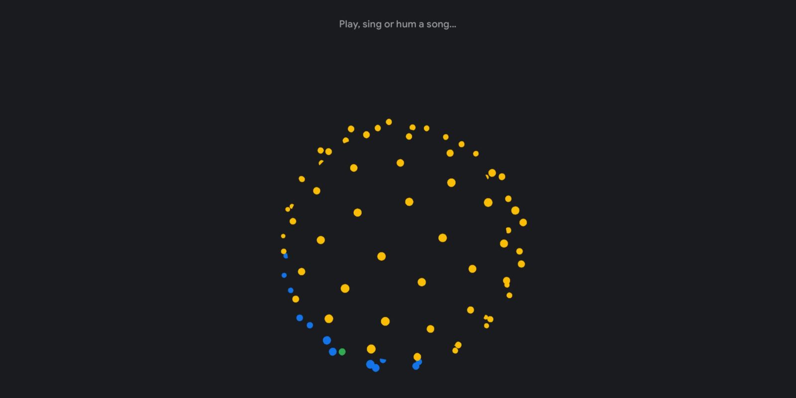 Несколько недель назад значок сменил белый музыкальный ключ на синем фоне на противоположный вариант. Приложение Google 15.44, последняя бета-версия, снова обновляет поиск песен, представляя другой значок с нотой (более упрощенный), разделенный на синий, зеленый, желтый (лишь небольшой сегмент) и красный цвета. Это соответствует полноэкранному глобусу вращающихся точек.