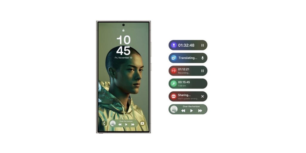 Одной из главных новых функций является «Now Bar» — новая система уведомлений, которую Samsung использует для «актуальных событий». В основном отображаясь на экране блокировки, «Now Bar» может показывать такую информацию, как таймер, тренировка, музыка и многое другое. Она работает очень похоже на Dynamic Island на iPhone, хотя Samsung не упомянула, могут ли сторонние приложения использовать эту систему.