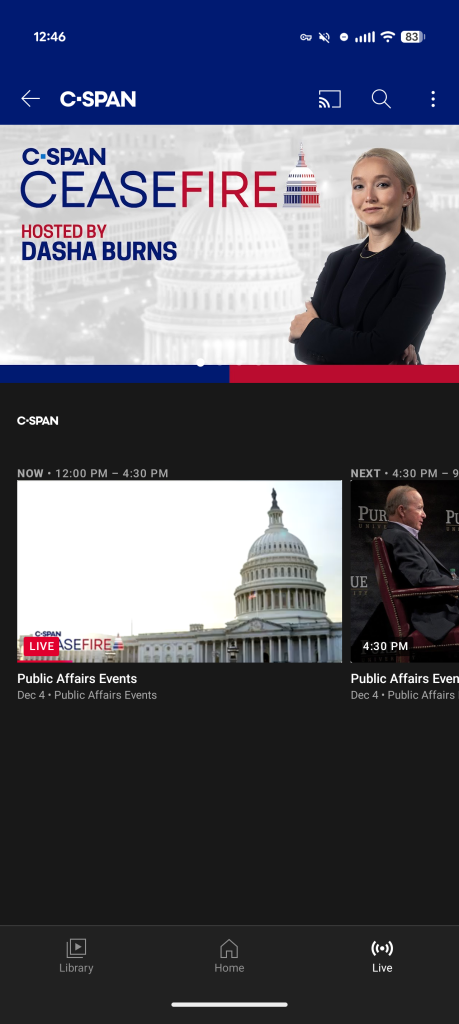 C-SPAN, а также C-SPAN2 и C-SPAN3 теперь транслируются на YouTube TV, предоставляя подписчикам фирменное освещение текущих событий в Конгрессе США от начала до конца. Этот запуск последовал за соглашением между Google и C-SPAN в сентябре, в соответствии с которым YouTube TV согласился платить такую же плату, как и традиционные кабельные компании, за трансляцию всех трех сетей на сервисе.