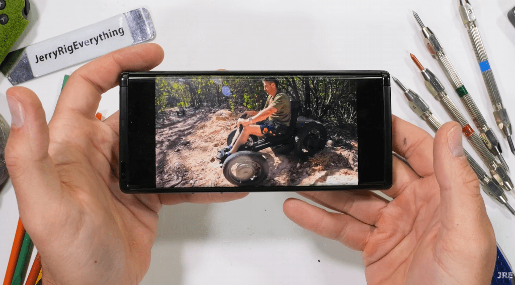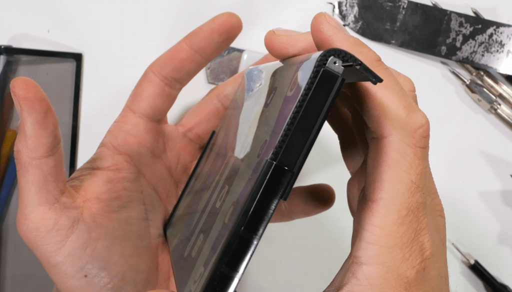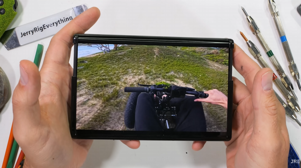Видео также ясно показывает некоторые недостатки, такие как мягкий пластик (с ультратонким стеклом под ним) внешнего дисплея. Как уже упоминалось, он скользит под настоящей стеклянной панелью на задней стороне устройства. Тем не менее, не лучший вариант для карманного устройства.