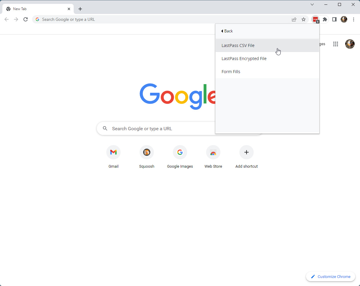 - Оттуда вы можете перетащить или выбрать экспортированный CSV-файл из LastPass или любого другого сайта.